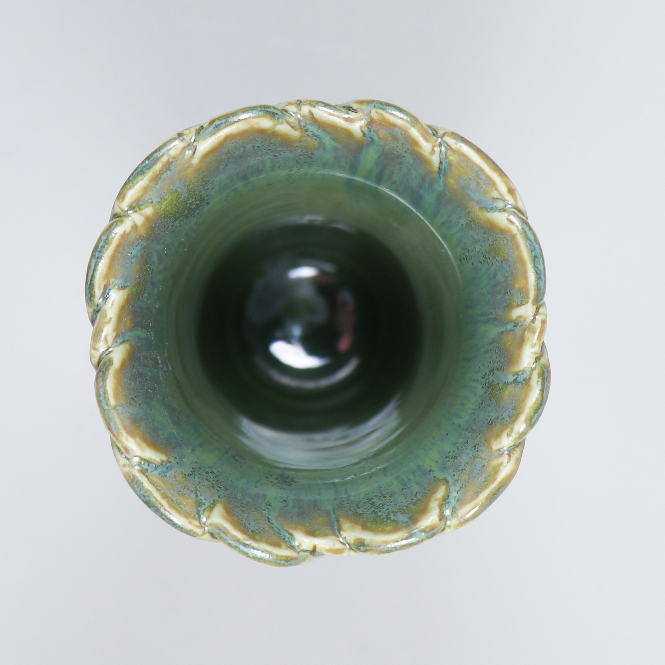Sea Glass glaze. Fired ^6. 5″h x 2 1/2″w