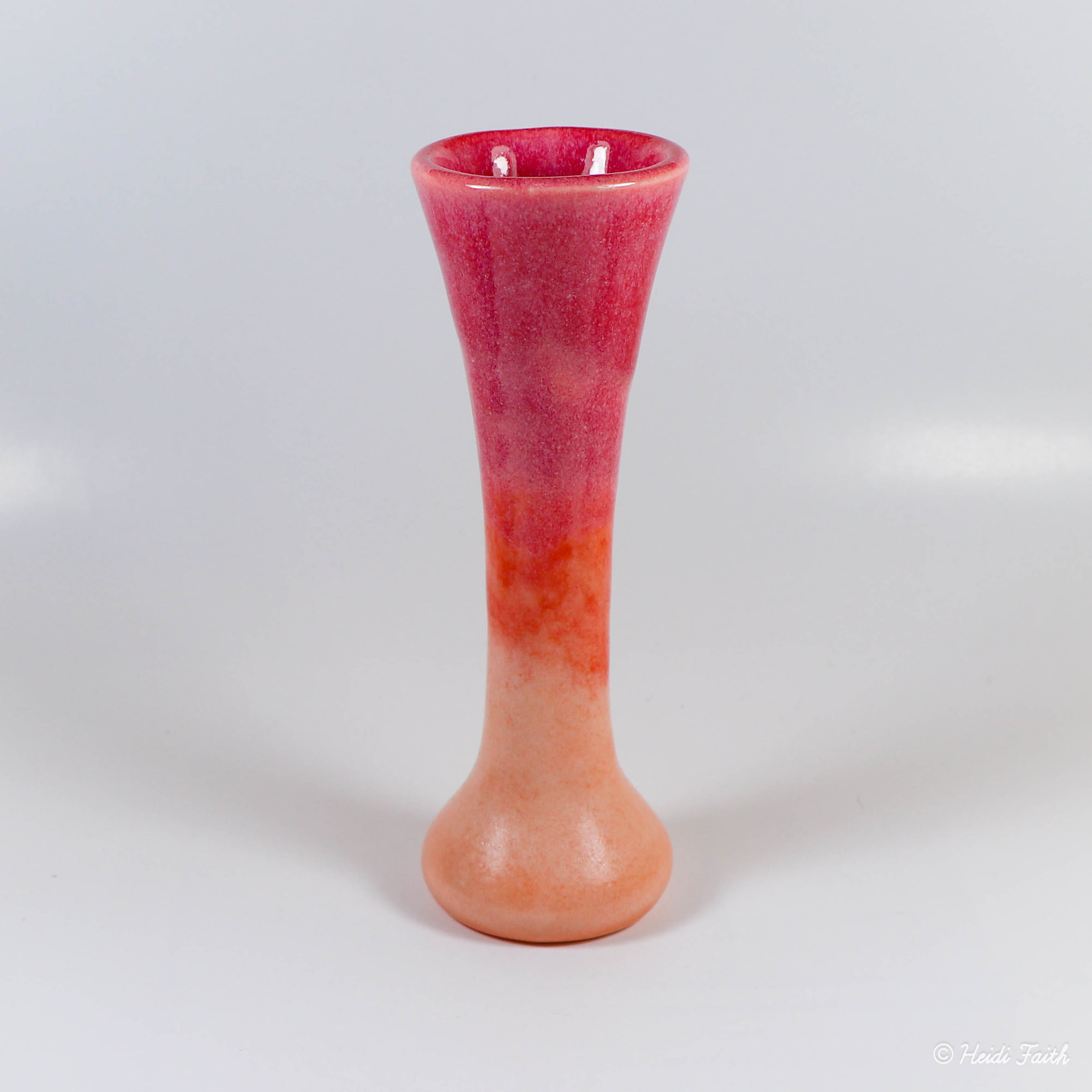 Slipcast porcelain. Interior: Cherry Blossom Exterior: Tangerine Ice, Cherry Blossom Fired ^5. 5 3/8″h x 1 1/4″w