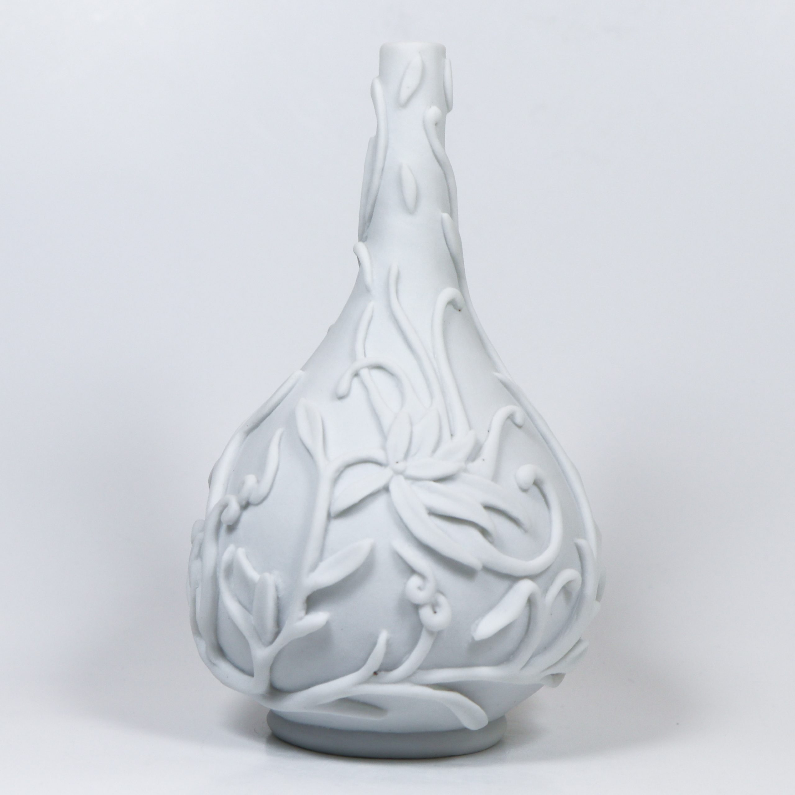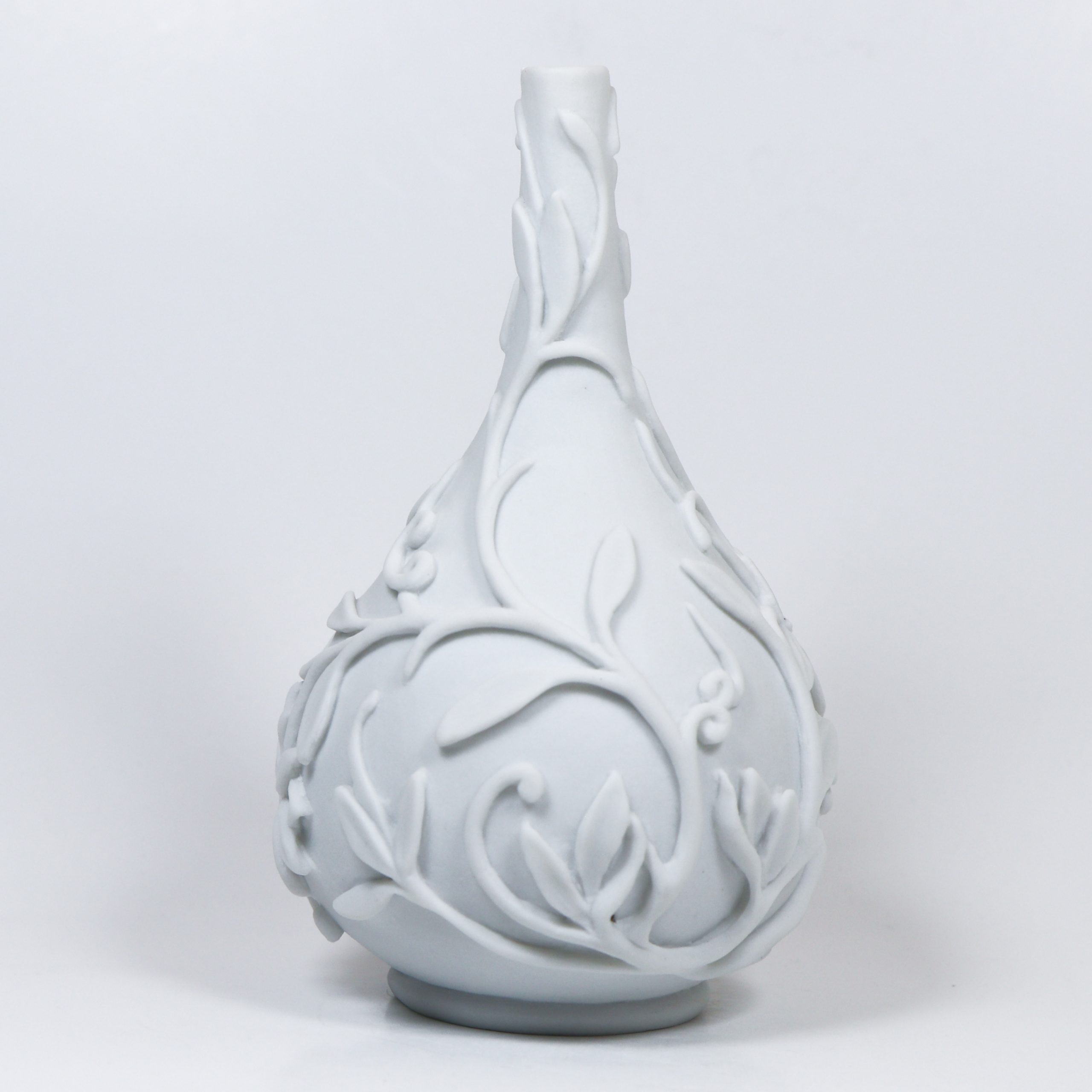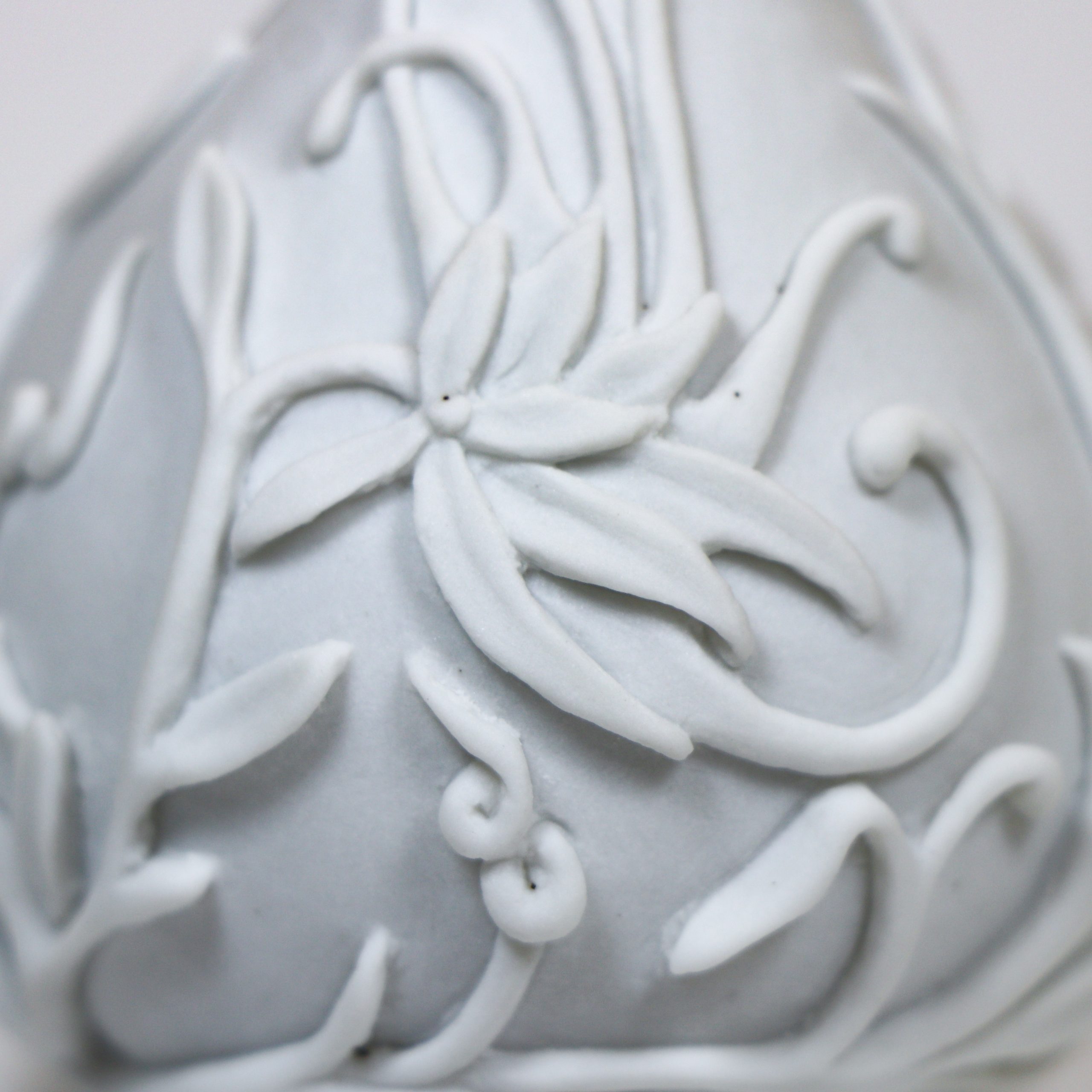 Southern Ice Porcelain. Wheel thrown and hand carved. Fired ^10. Unglazed. 3 3/4 x 2 1/4