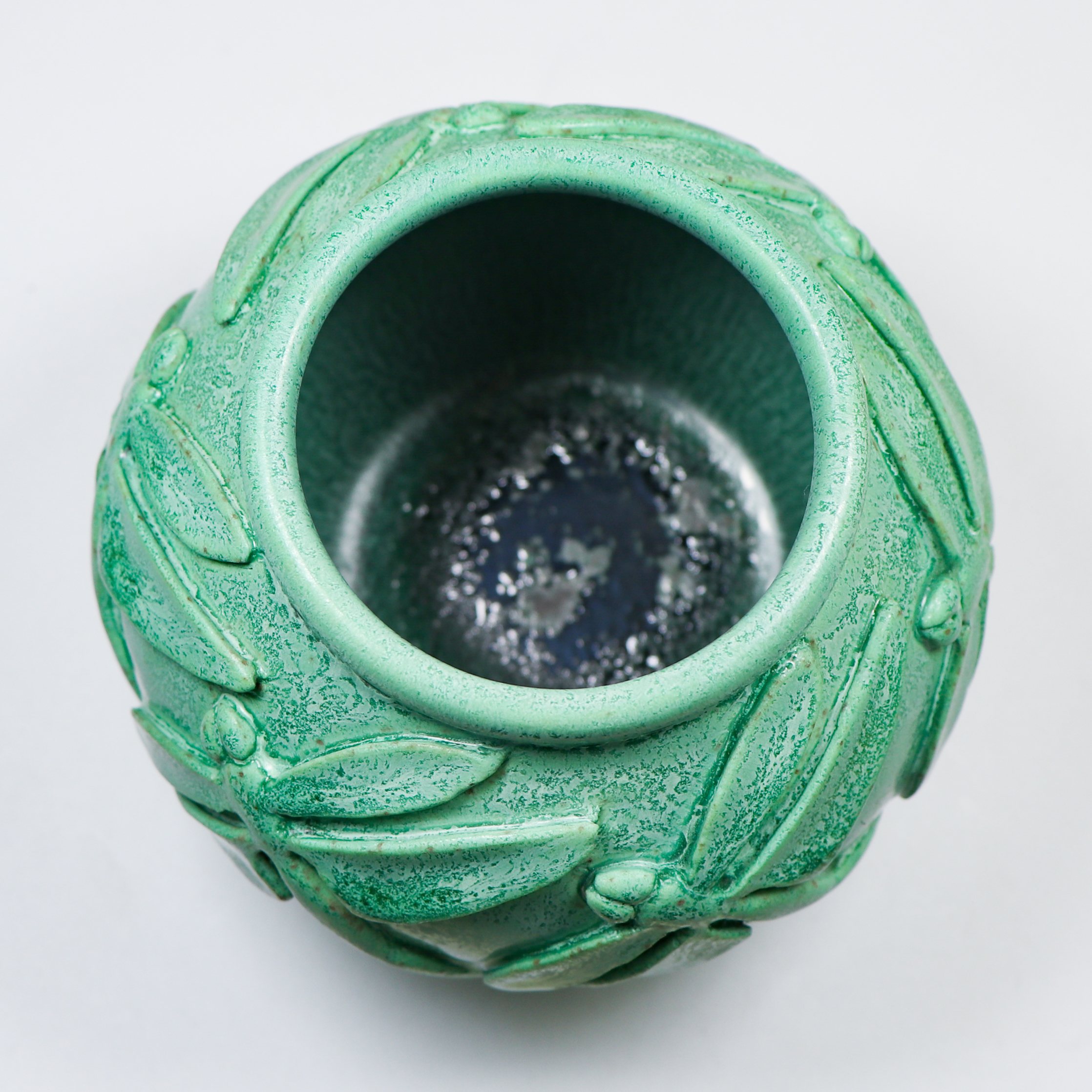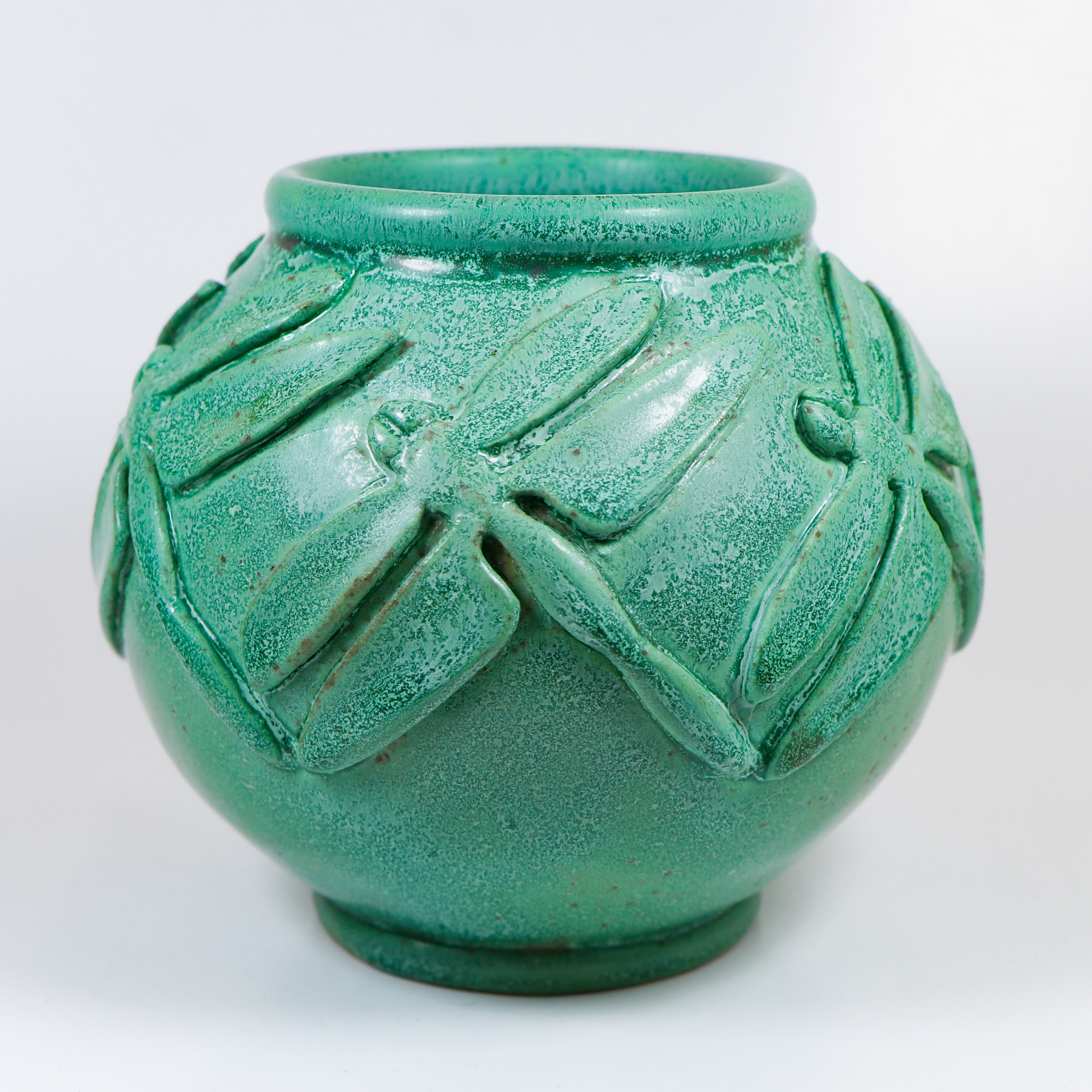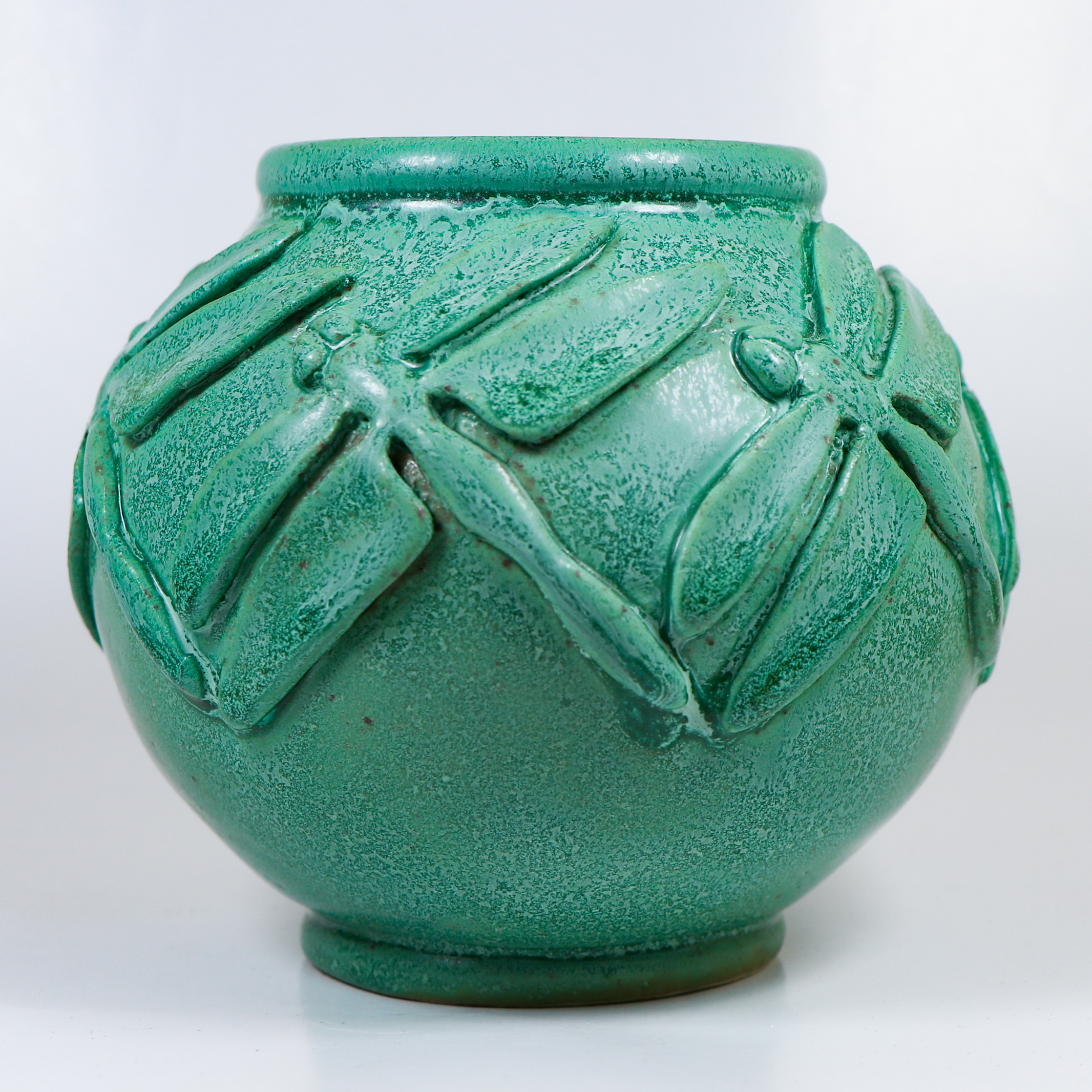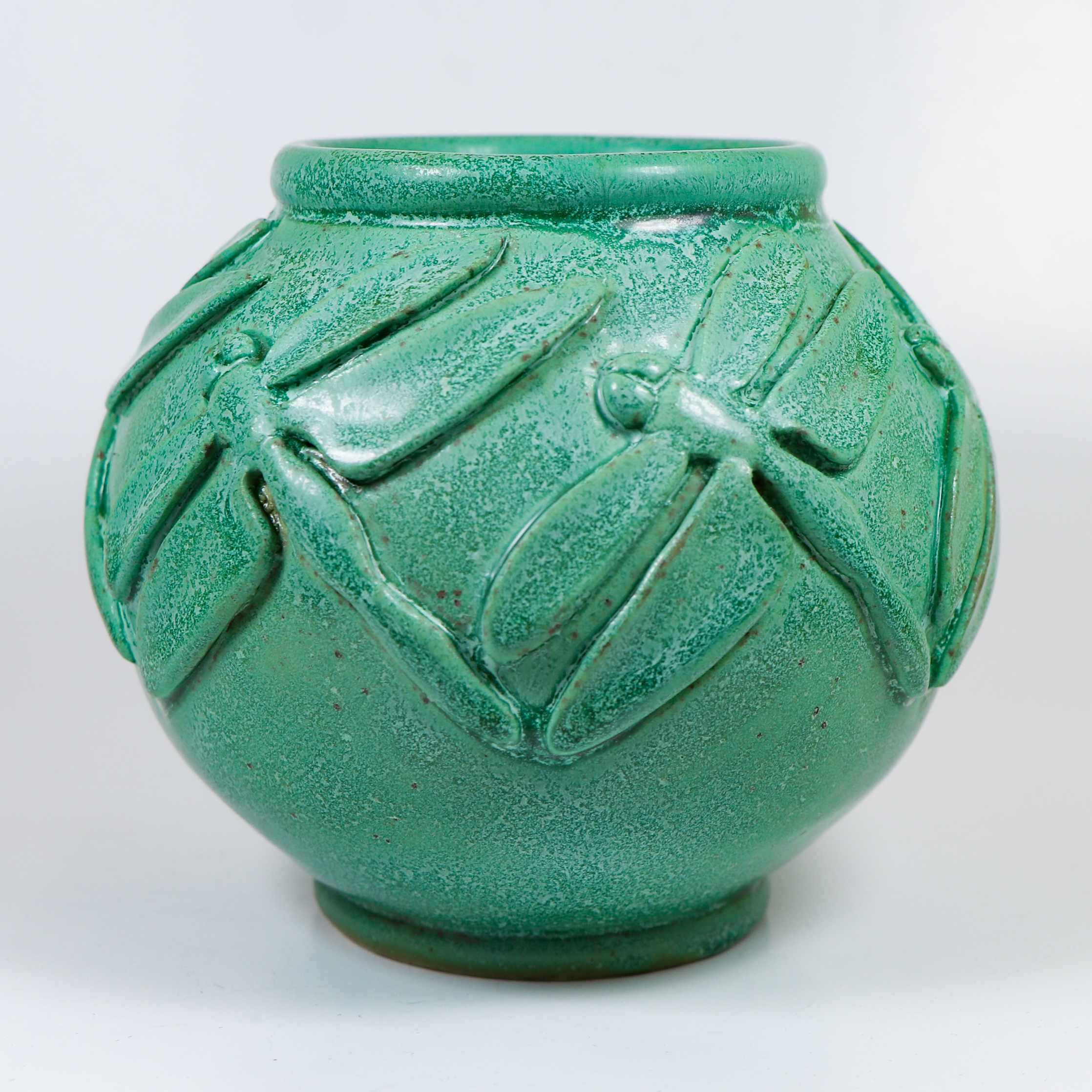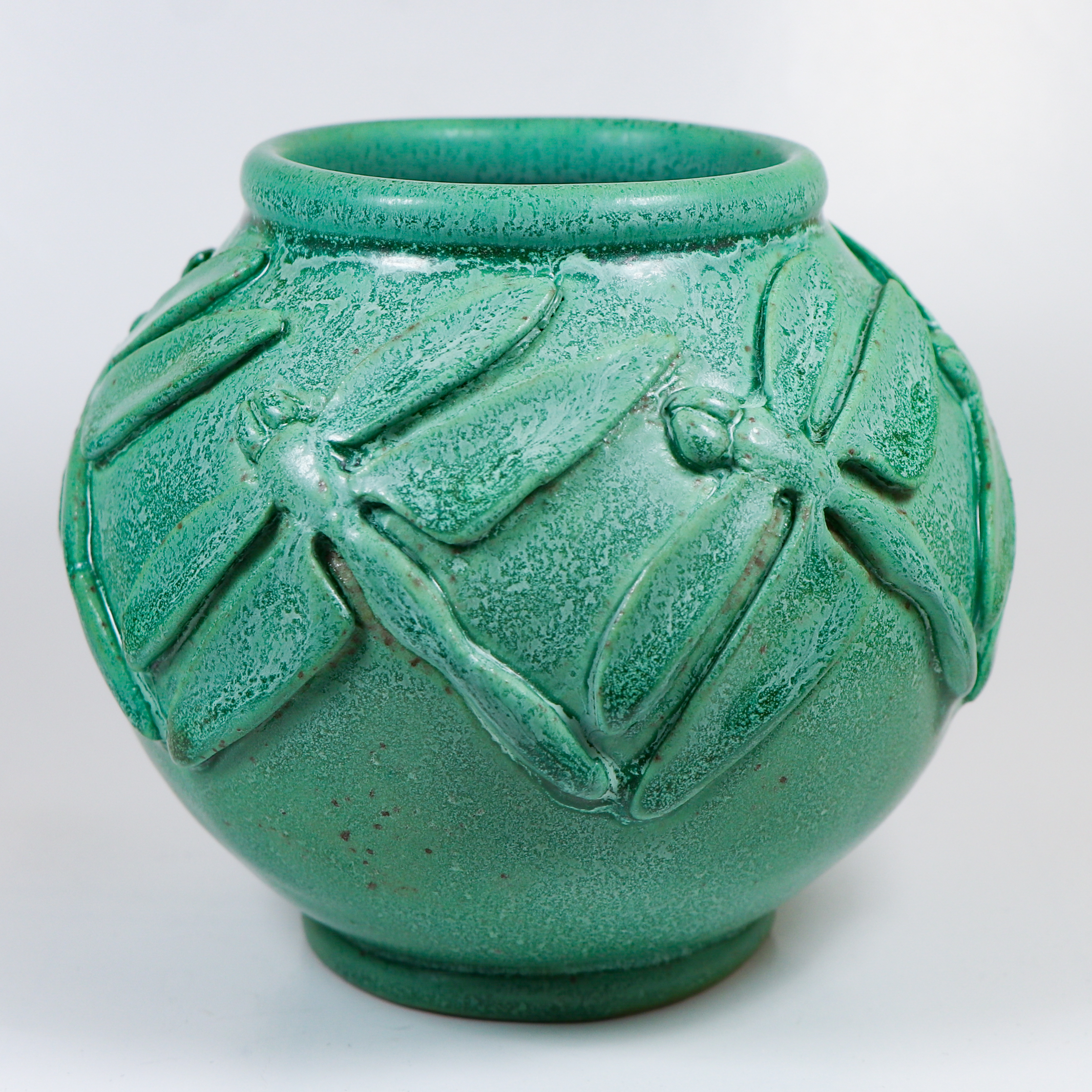 Wheel thrown Babu porcelain. Hand carved. Satin patina glaze Fired ^10. 4″h x 4 7/8″w