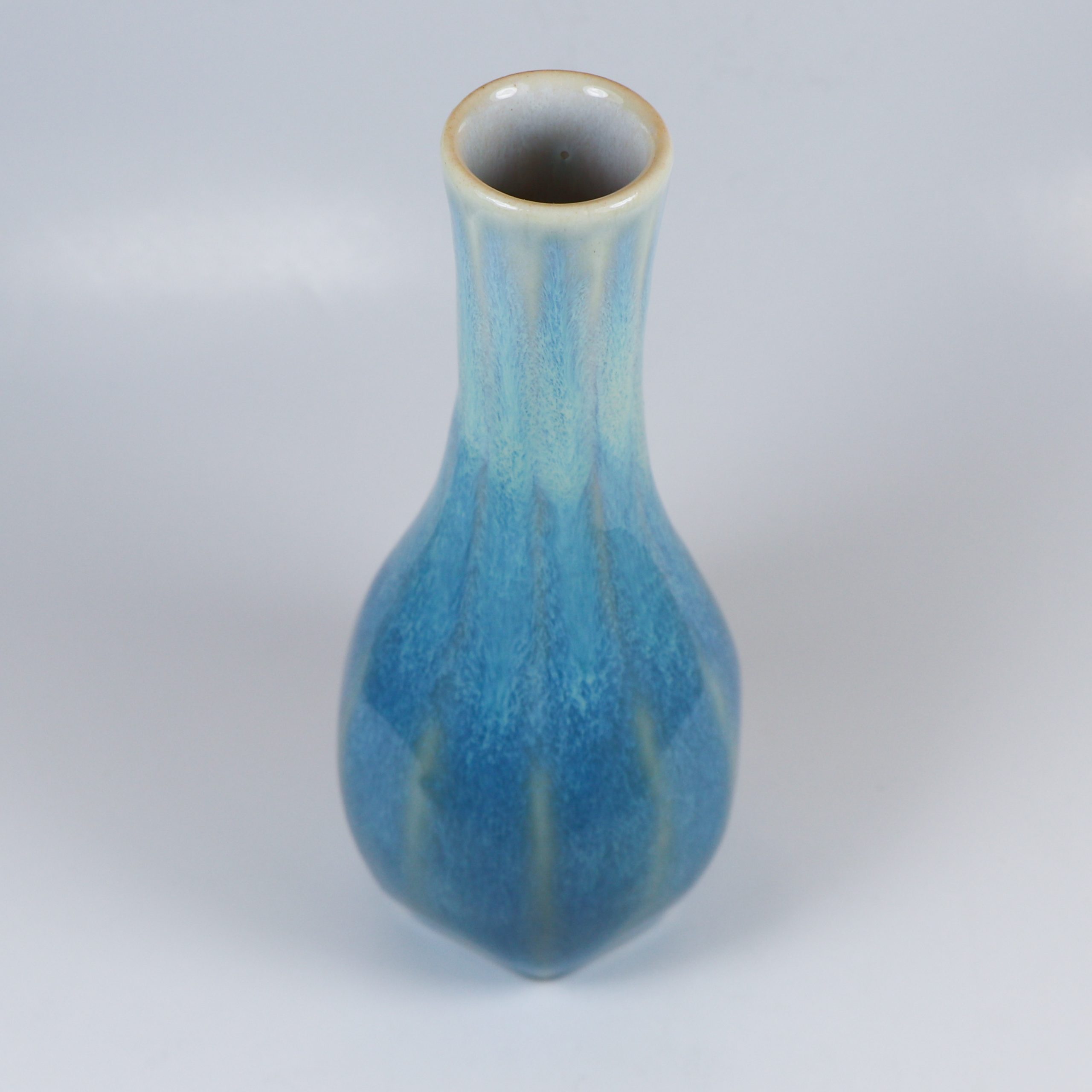 Wheel thrown Elaine’s porcelain. Altered. Hand carved. White Pearl & Opal glazes. Fired ^6. 5 1/4″h x 2″w