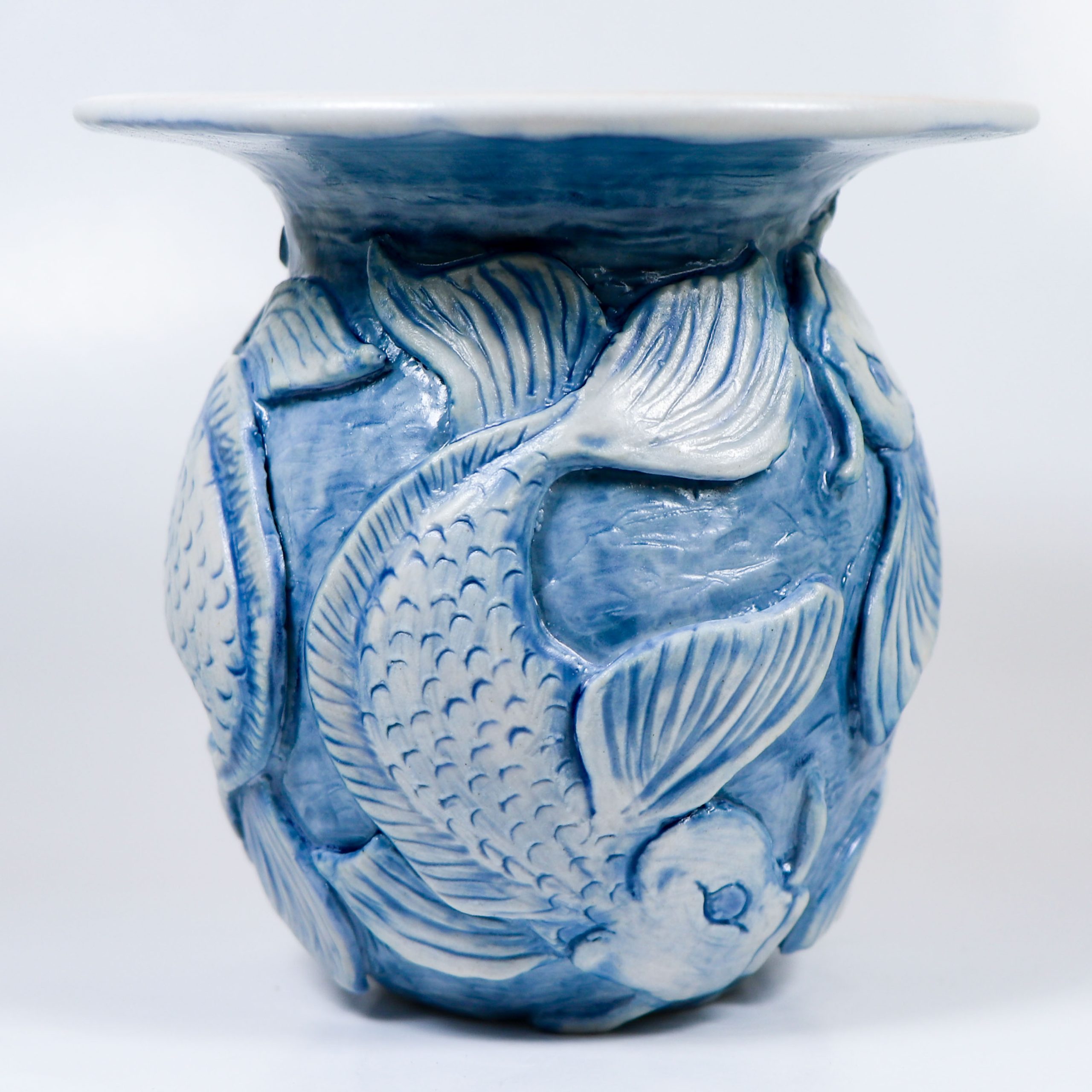 Wheelthrown Babu porcelain. Handcarved. Satin Matte glazes. Fired ^10. 4″h x 4″w