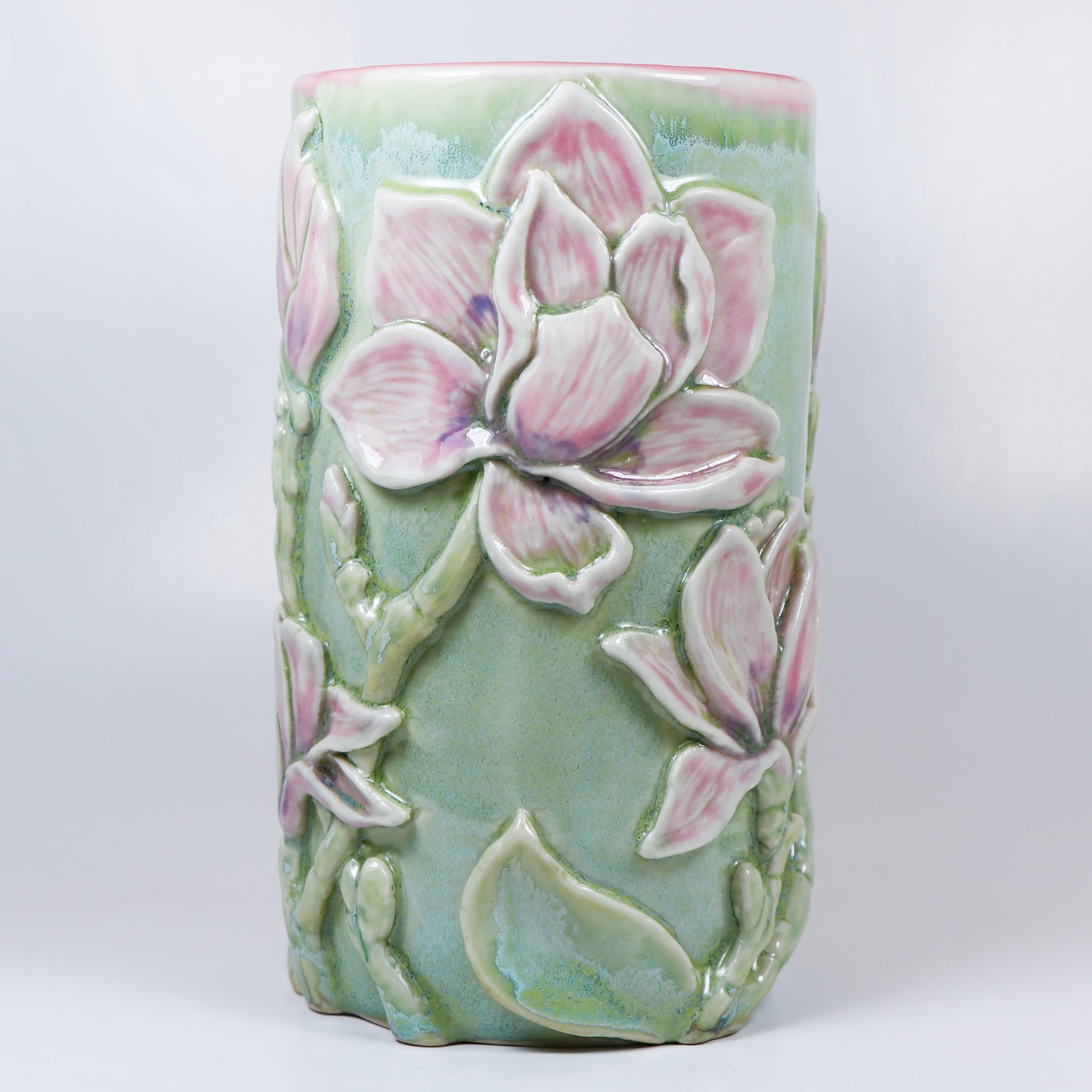 Wheel thrown Elaine’s porcelain. Hand carved.