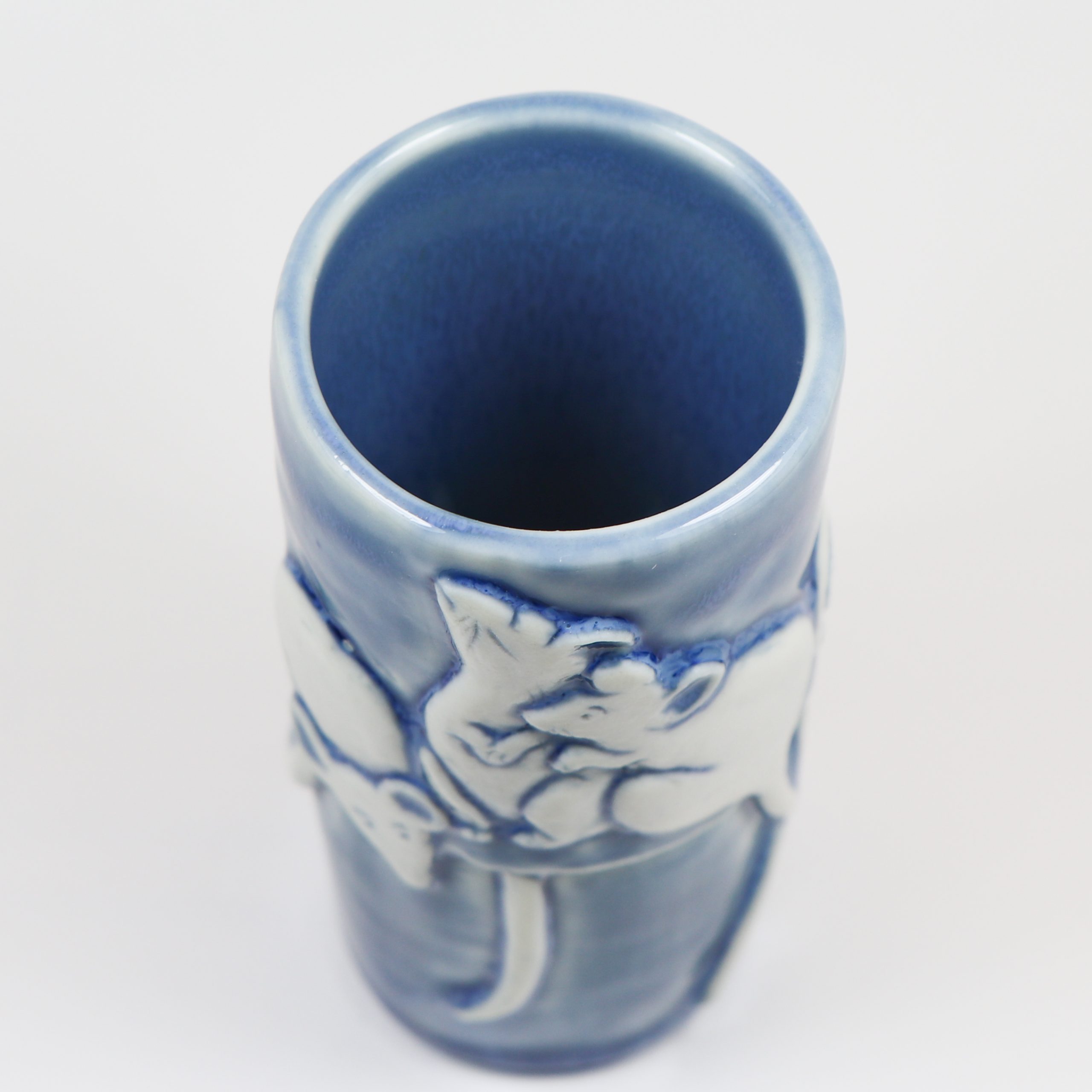 Blue Opal glaze. Fired ^10.