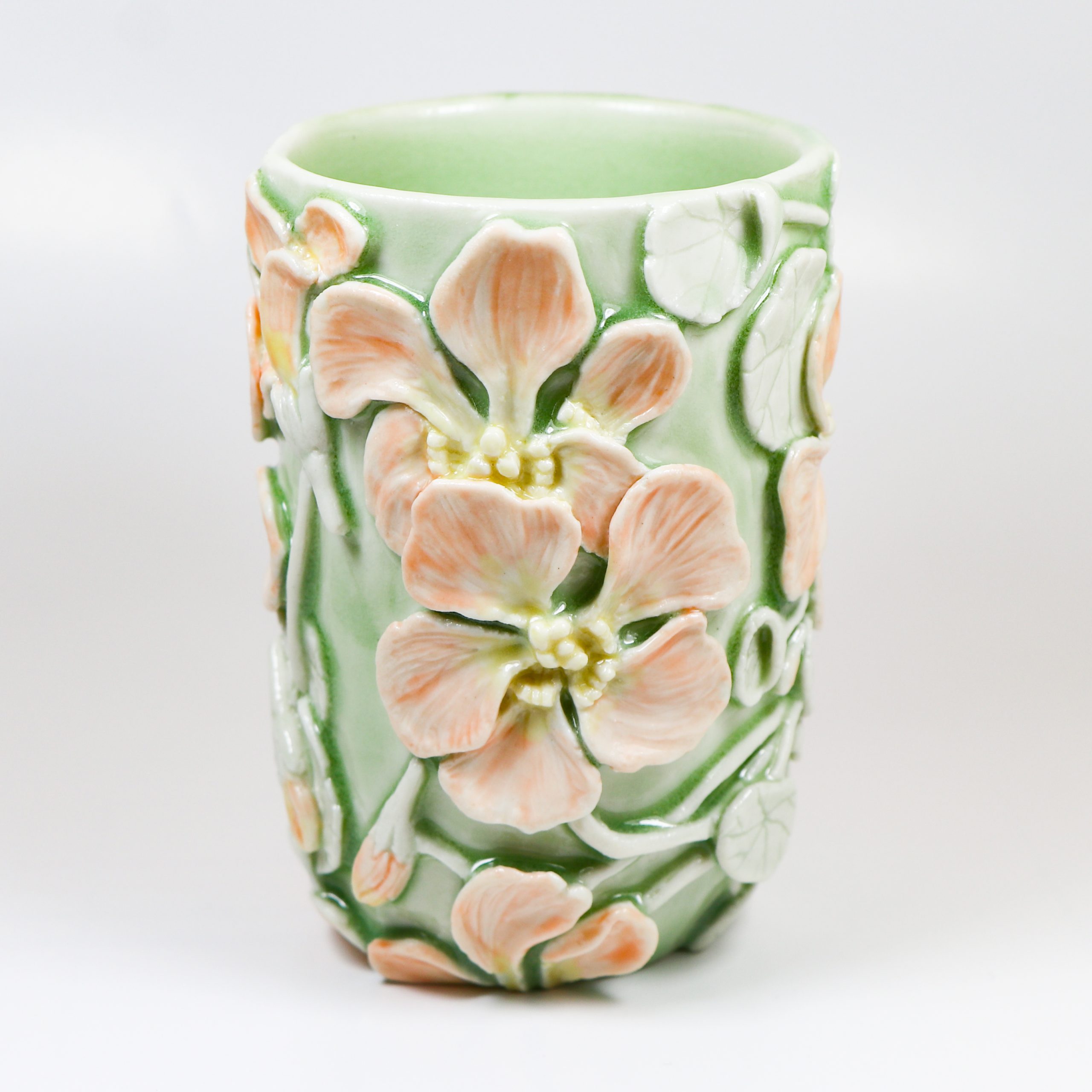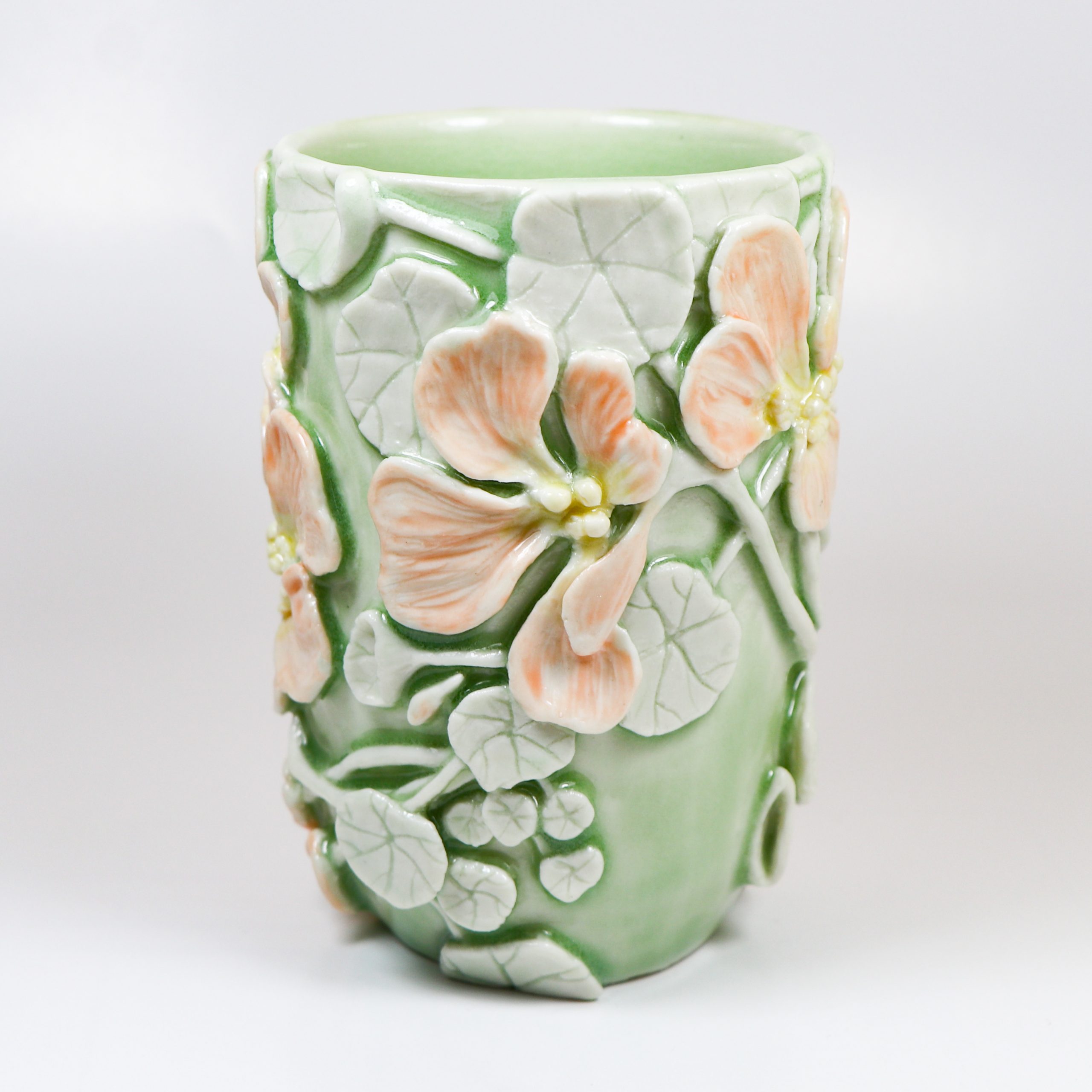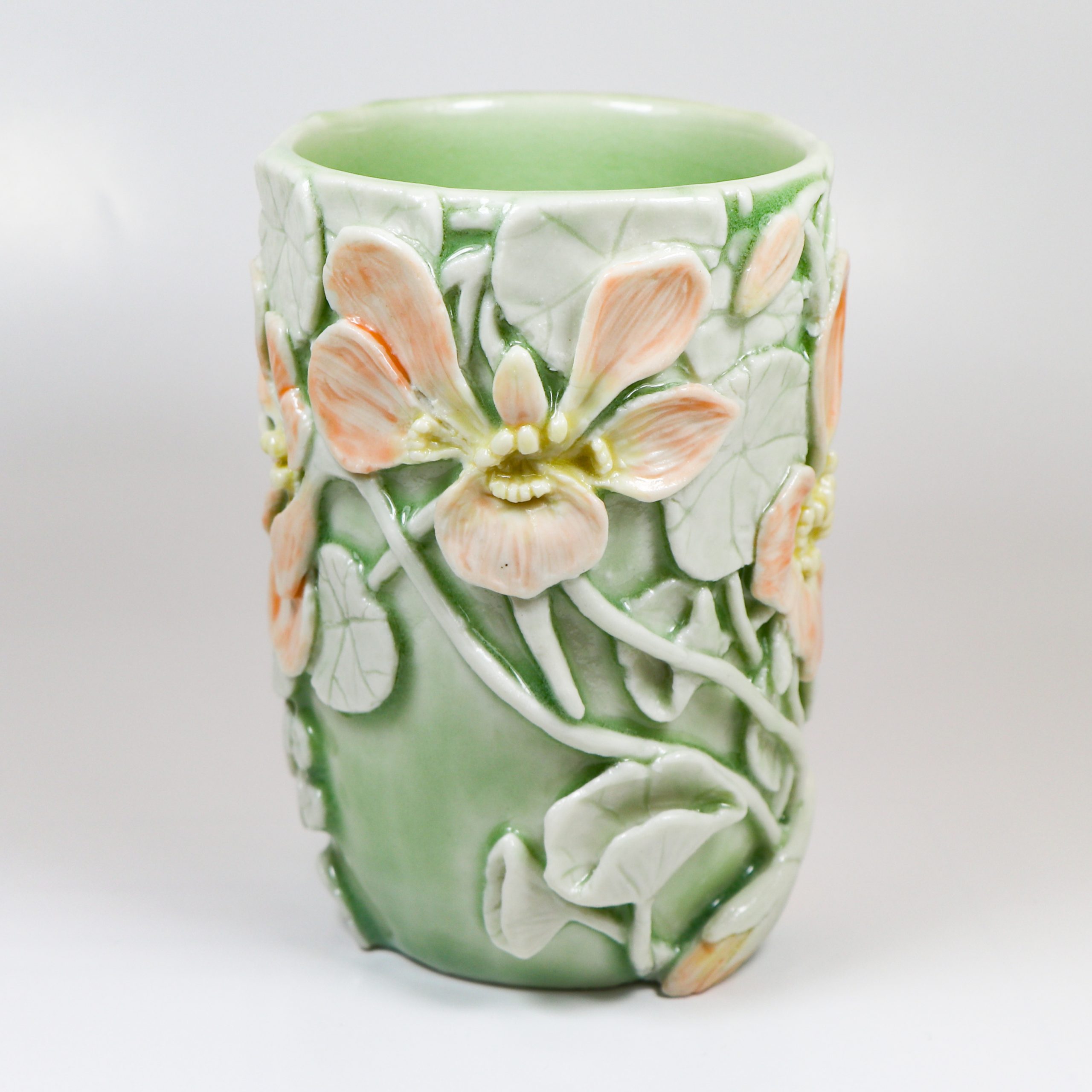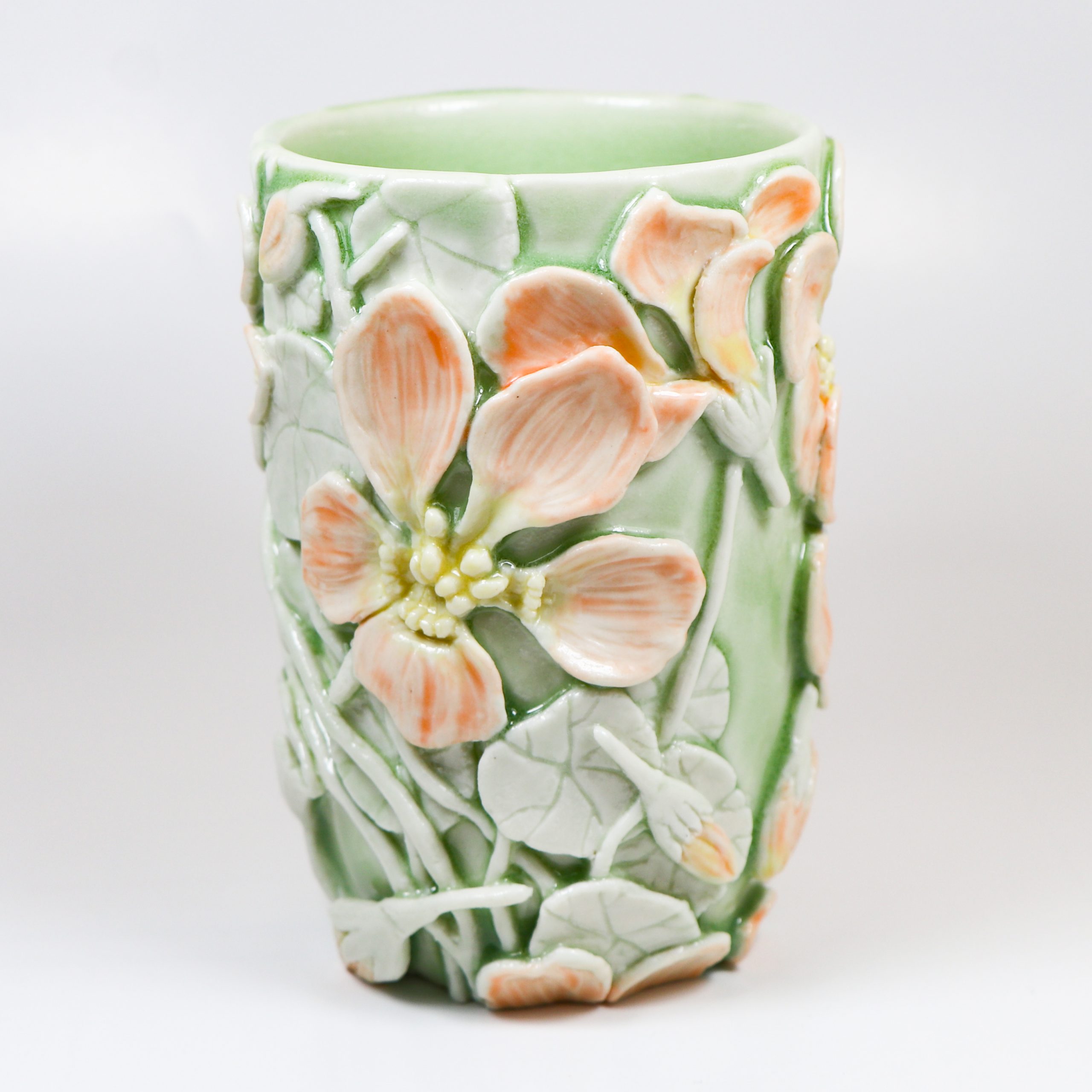 Green, tangelo & marigold celadon glazes.