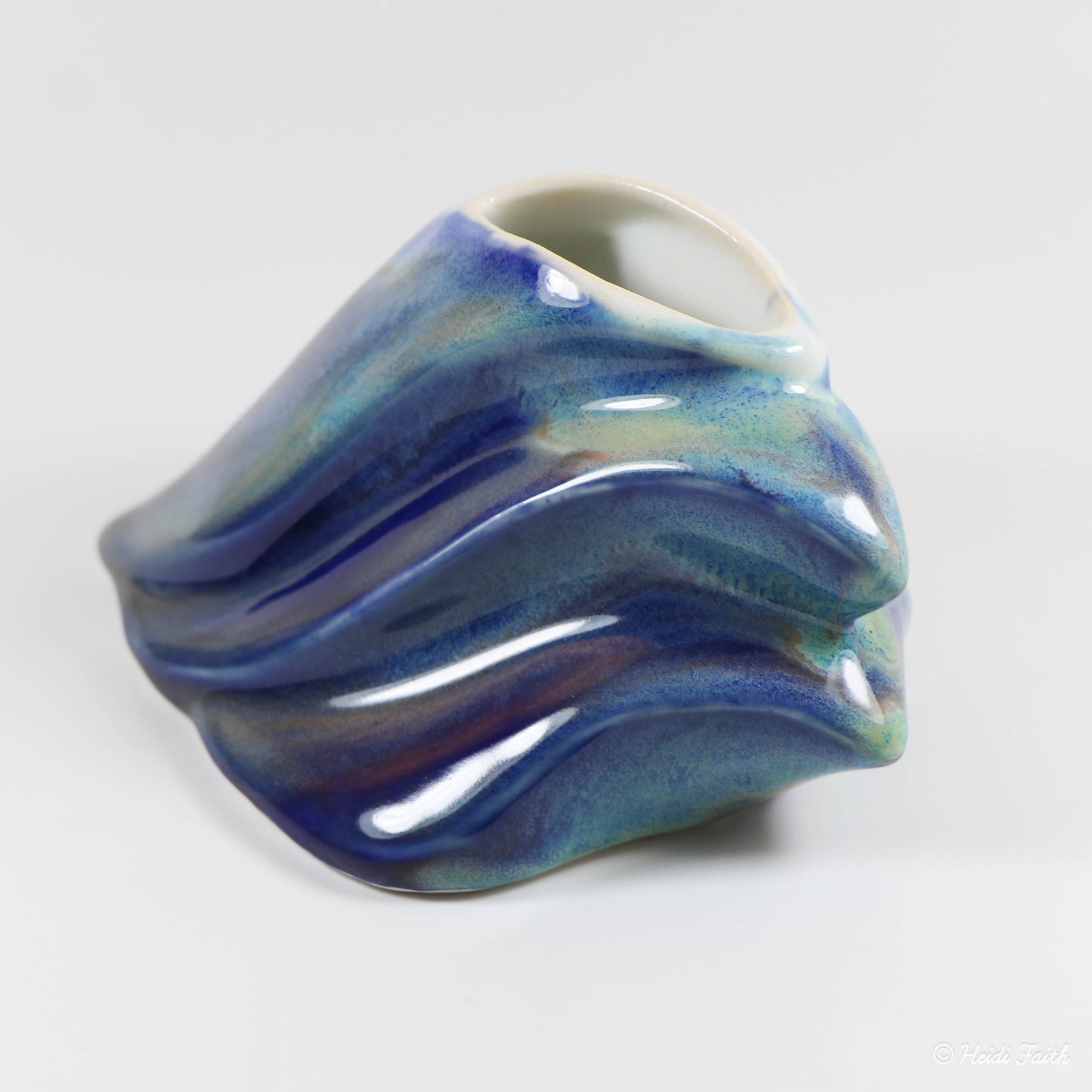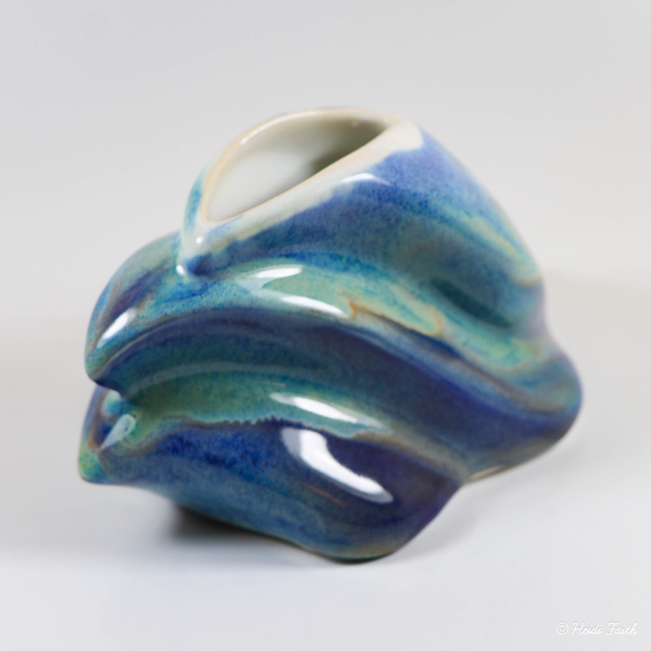 Exterior: Cobalt celadon under Textured Turquoise, Seaweed and Pearl White.