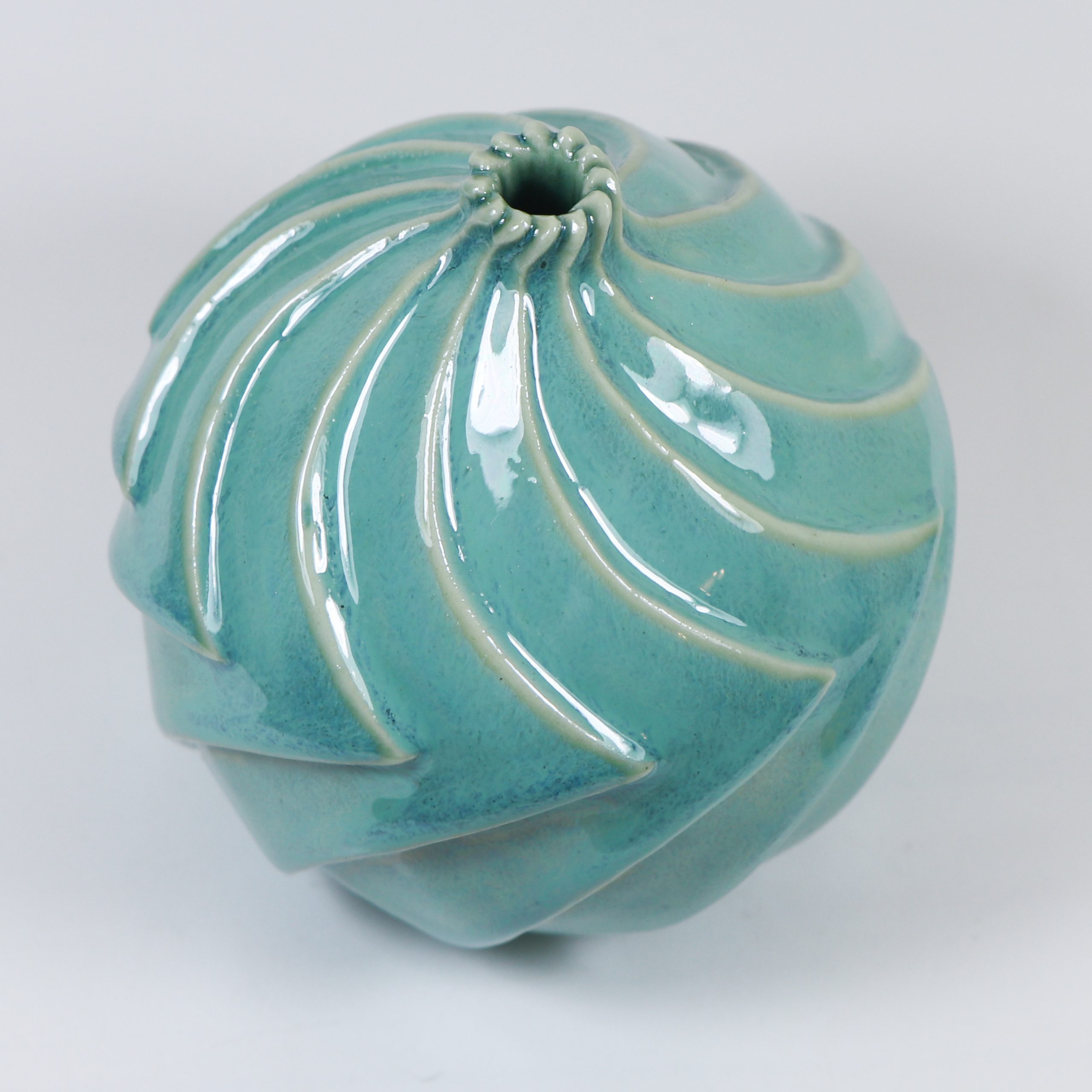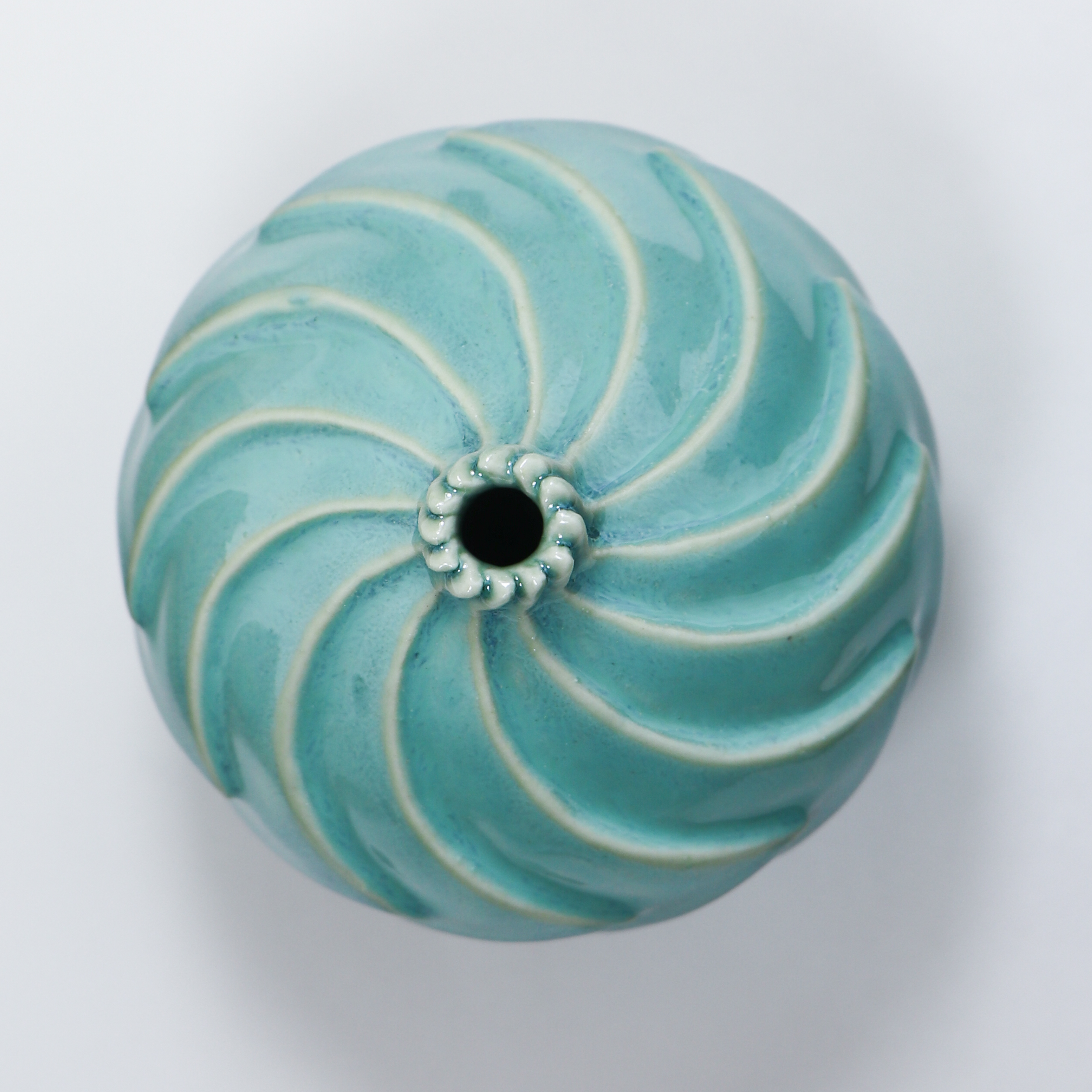 Wheelthrown Elaine’s porcelain. Handcarved.
