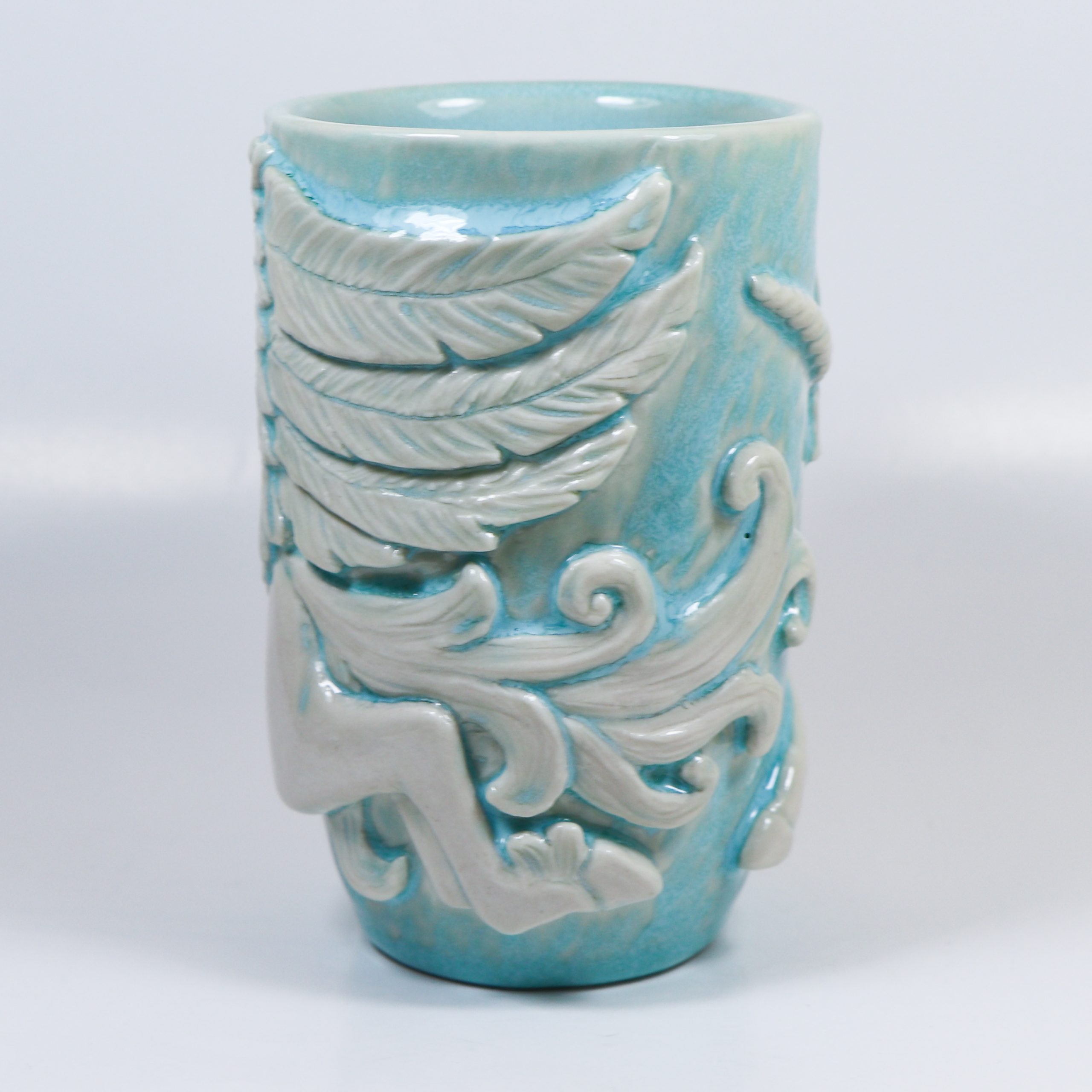Wheelthrown Elaine’s porcelain. Handcarved.